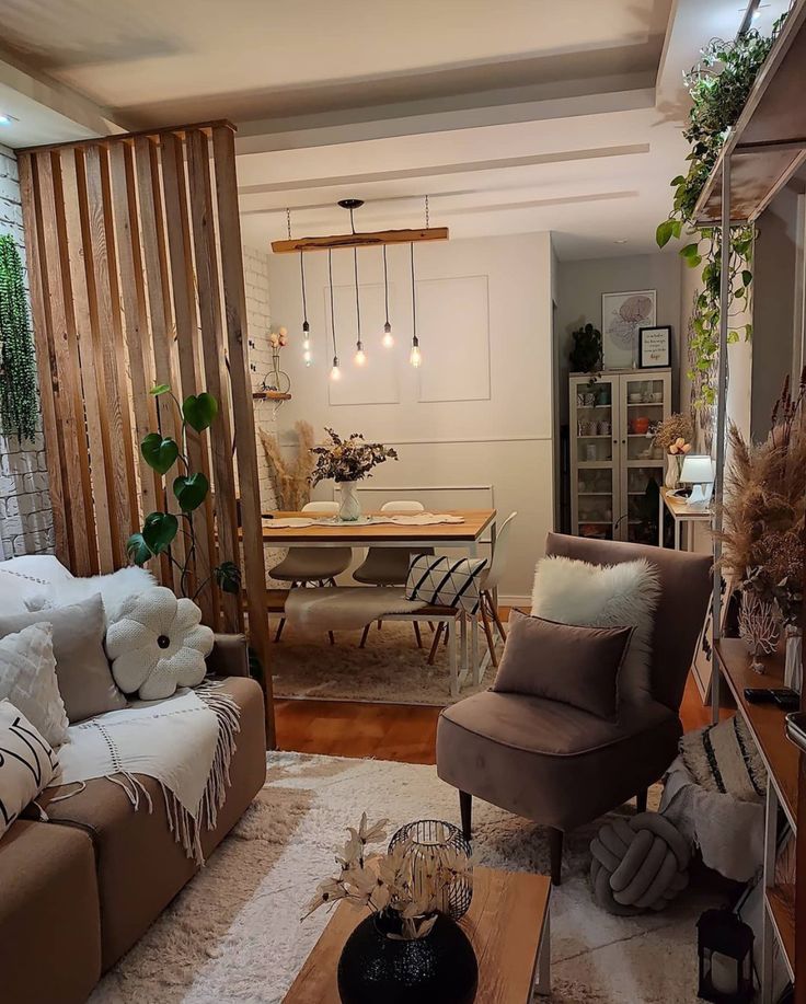 Aí entram os detalhes que fazem o coração quentinho: mantas, almofadas, plantinhas, tapetes macios pra pisar descalça… sabe essas coisinhas que dão vontade de ficar em casa o dia todo? E, claro, não subestime o poder de uma luz indireta – algumas velas, um abajur ou aquelas luminárias de LED podem transformar o ambiente num instante.